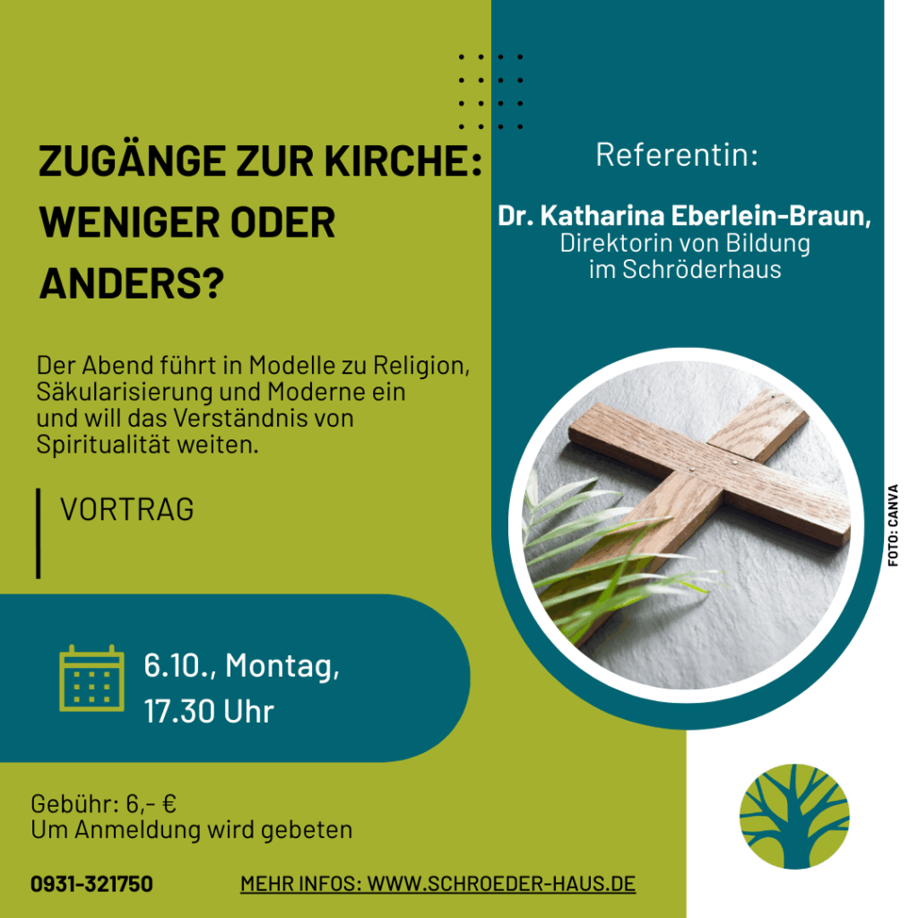 Entfällt wegen Krankheit! Ein Nachholtermin wird in Kürze veröffentlicht. Zugänge zur Kirche: weniger oder anders?