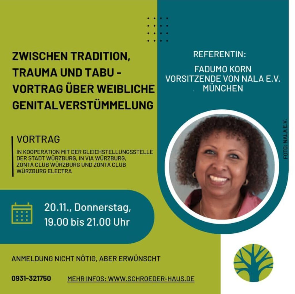 Weibliche Genitalverstümmelung (Female Genital Mutilation – FGM) ist eine schwere Menschenrechtsverletzung und nimmt Mädchen und Frauen ihr Recht auf körperliche Unversehrtheit und sexuelle Selbstbestimmung. Weltweit sind ca. 230 Millionen Frauen von FGM betroffen (Quelle Unicef), in Würzburg sind es über 450. Für die Betroffenen ist dies mit lebenslangen körperlichen und seelischen Folgen verbunden.