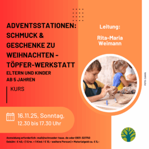 Adventsstationen: Schmuck & Geschenke zu Weihnachten - Töpfer-Werkstatt für Eltern und Kinder